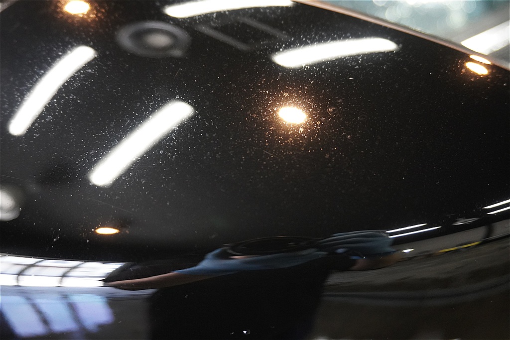 今回ご用命いただいたCX-5ですが、ボディ全体をチェックすると、この時期特有の「花粉のシミ」がびっしりと付着している状態でした。マツダの繊細で美しい塗装にとって、花粉の浸食は美観を損ねる大きな天敵です。